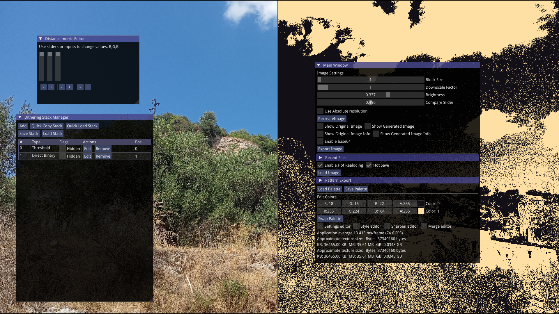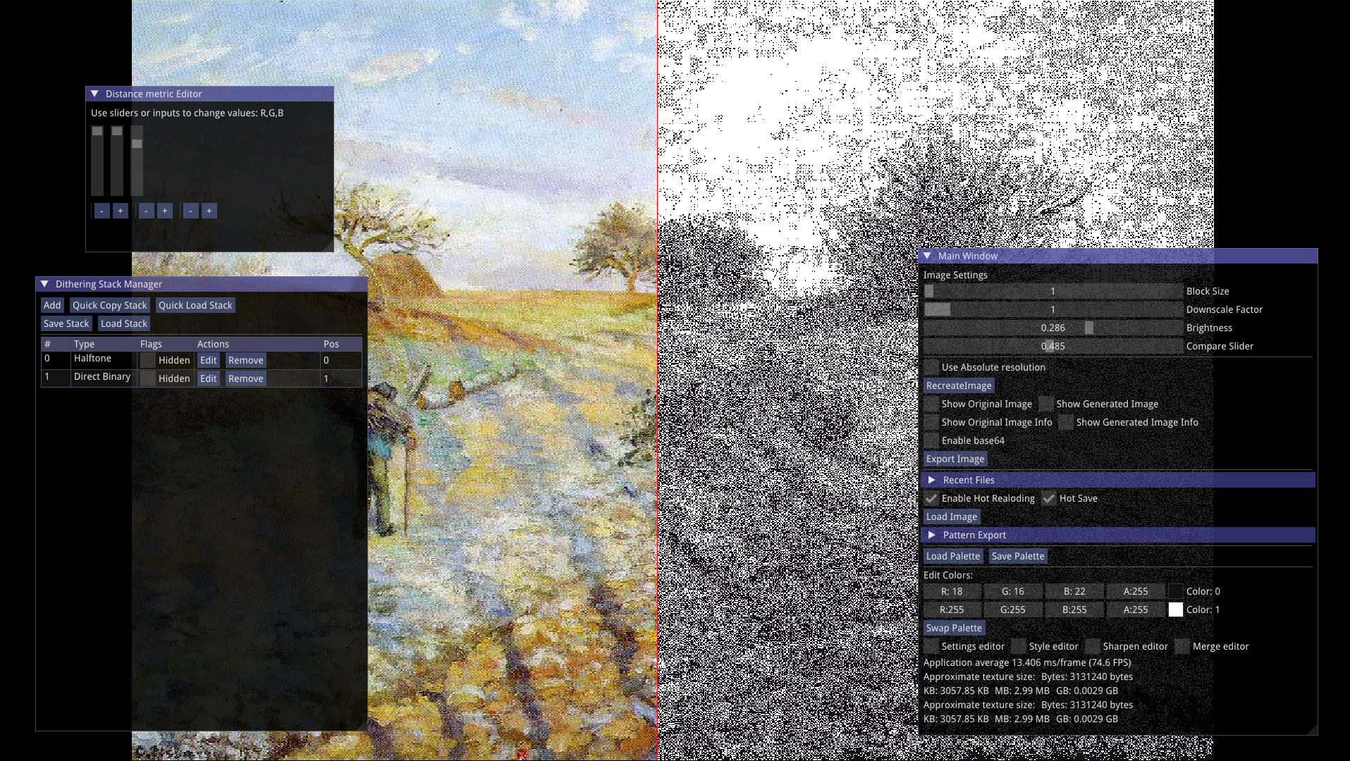 Float-ditherer is a tool that converts images into pure 1-bit images using a user specified palette tailored to convert images,textures and sprites using a float-based sampling method
