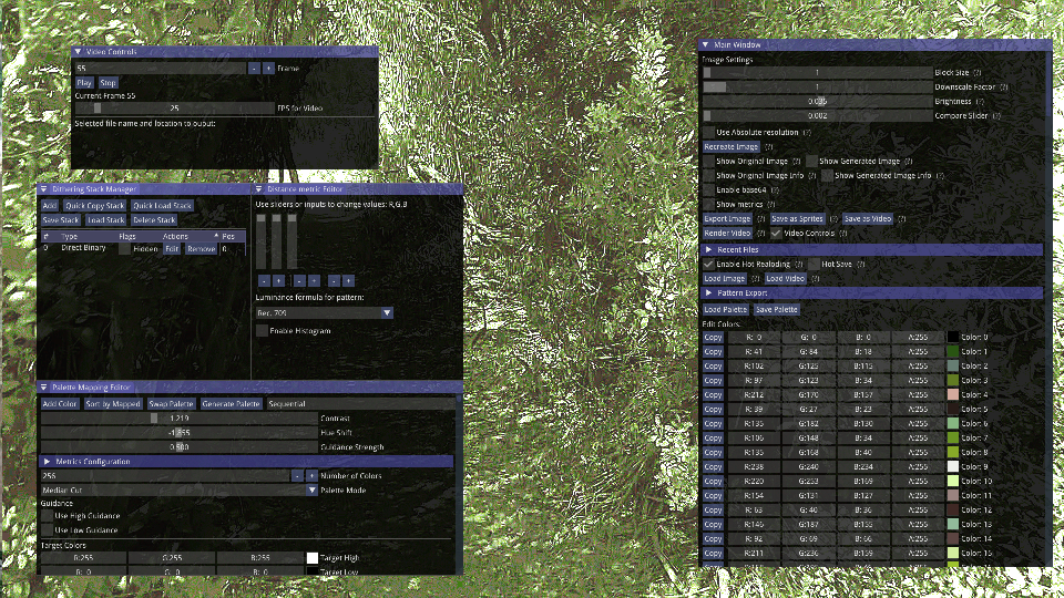 This update improves Video Controls, Adds new feature namely Float Rounding Mode,toggleable helper markers,added new algorithms: AM Halftone and Classical DBS.And Improved I/O:QOI, PCX, and XCF export for images, TIFF color export, GIF support, and APNG and CBZ for sprites.And lastly Improved Italian Localization